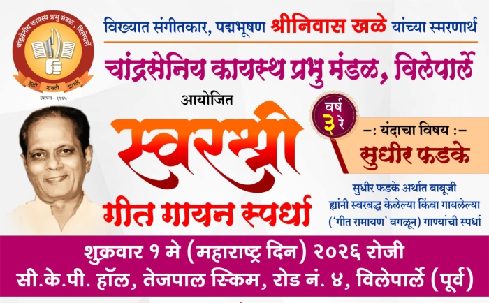१) संगीतकार सुधीर फडके अर्थात बाबूजी यांनी गायलेल्या किंवा स्वरबद्ध केलेल्या (‘गीत रामायणा’ वगळून) कोणत्याही भाषेतील गाण्याचा एकच अंतरा सादर करता येईल. २) गाणे सादर करण्यासाठी तबला, पेटी, व सिंथेसाइझरची साथ संगत करणारे वादक संस्थेतर्फे पुरवले जातील. ३) स्वताचे वादक आपापल्या स्वखर्चाने आणू शकता ४) स्पर्धेचे अंतिम निकालाचे अधिकार केवळ परीक्षकांकडे असतील. या संदर्भात कोणताही हस्तक्षेप स्पर्धकांनी, नातेवाईकांनी / समर्थकांनी करू नये. ५) एखाद्या वयोगटात स्पर्धक कमी असल्यास जाहीर केलेली सर्व बक्षिसे बहाल केलीच पाहिजे अशी अट नाही. ६) स्पर्धेत भाग घेण्यास कोणत्याही धर्माची अथवा ज्ञातीची अट नाही. व्यावसाईक गायक / गाईकांना स्पर्धेत भाग घेता येणार नाही. ७) १२ ते १८ ह्या वयोगटात त्याहूनही लहान वयाच्या स्पर्धकांना सहभागी होता येईल परंतु त्यांचे मूल्यमापन हे ह्या वयोगटातील स्पर्धकांबरोबरच केले जाईल. ८) स्पर्धेत भाग घेण्यासाठी पूर्व नोंदणी अनिवार्य:– संस्थेच्या कार्यालयात (सकाळी १० ते १२ व सं. ते ८ वाजेपर्यंत) फॉर्म स्वीकारले जातील. – संस्थेच्या इंटरनेट संकेत स्थळा वरुन फॉर्म भरून (स्पर्धा शुल्क क्युआर कोड स्कॅन करून भरावे) – https://vileparle.ckp.in/halls/swarshree ९) केवळ प्रथम नोंदणी केलेल्या १०० स्पर्धकांनाच स्पर्धेत सहभागी होता येईल. संपूर्ण नोंदणी शुल्क यशस्वी पणे भरल्याचा दिनांक आणि वेळ, या अनुसार नोंदणी क्रम गृहीत धरला जाईल. १०) स्पर्धेला येताना आपले आधार कार्ड किंवा इतर सरकारी ओळख पत्र(पॅन कार्ड / पासपोर्ट / ड्रायविंग लाईसेन्स) सोबत आणणे बंधनकारक आहे.११) कोणत्याही प्रकारचा वाद उद्भवल्यास चांद्रसेनीय कायस्थ प्रभू मंडळ, विलेपार्ले यांचा निर्णय अंतिम आणि बंधनकारक राहील.